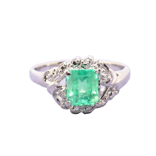 エメラルド1カラットとダイヤモンドをあしらったシルバー925製リング。上品で華やかなデザインは日常から特別なシーンまで幅広く活躍します。透明感あふれるコロンビア産エメラルドと耐久性のあるロジウムメッキ仕上げが魅力。