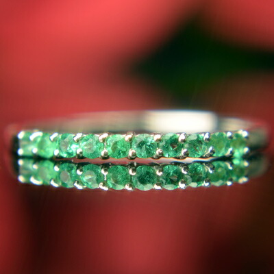 天然エメラルドを贅沢にあしらったハーフエタニティリングです。1号から製作可能でピンキーリングとしても楽しめるデザイン。5月の誕生石として特別なギフトにも最適で、送料無料でお届けします。