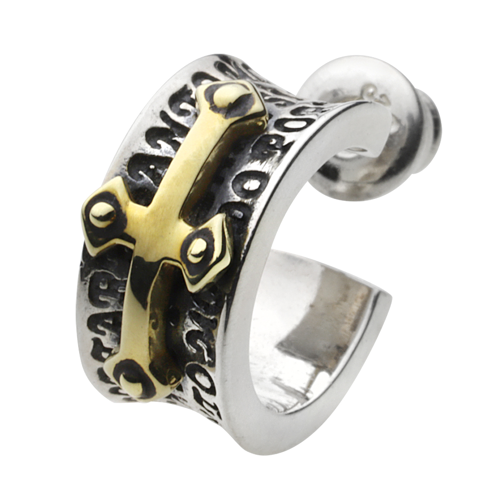 シルバー925と18金が織り成す重厚感あふれるメンズフープピアス。ゴシックなクロスデザインでストリートやロックスタイルに最適。高評価レビュー多数のFIGMART人気アクセサリーです。
