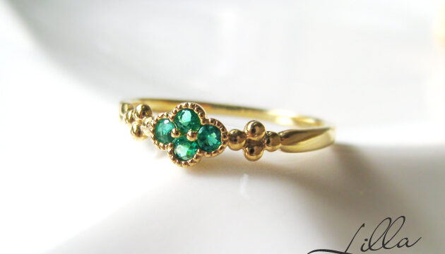 HOME > エメラルド > アンティーク風エメラルドリングの繊細な輝きと魅力レビューエメラルドリング 0.07ctとダイヤモンド0.05ctが織り成す華やかで上品なリング。ミル打ち加工によるアンティーク風の細やかな装飾が特徴で、K18イエ...