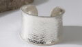 このバングルはシルバー925(SV925)を素材に採用し、上質な銀の輝きが際立ちます。表面のハンマードテクスチャ(打ちっぱなしの表面仕上げ)により、単調にならずさりげない存在感を演出。C型のシンプルなフォルムながら、光の反射で繊細な陰影が生まれ、上品で大人っぽい印象です。非常に薄く繊細な作りで、華奢ながらも凛とした美しさを持ち、ファッションのアクセントとして強すぎず自然に馴染みます。ニューヨークのカルチャーを感じさせるモダンなデザインで、日常使いからフォーマルまで幅広く活躍します。