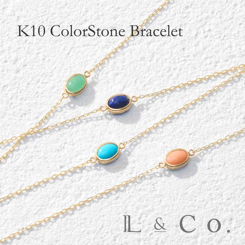 【倉庫発送】K10 カラーストーン ブレスレット イエローゴールド ラピスラズリ サンゴ コーラル クリソプレーズ ターコイズ トルコ石 華奢 普段使いに最適 ジュエリー 10金 10金 k10のデザインと素材感