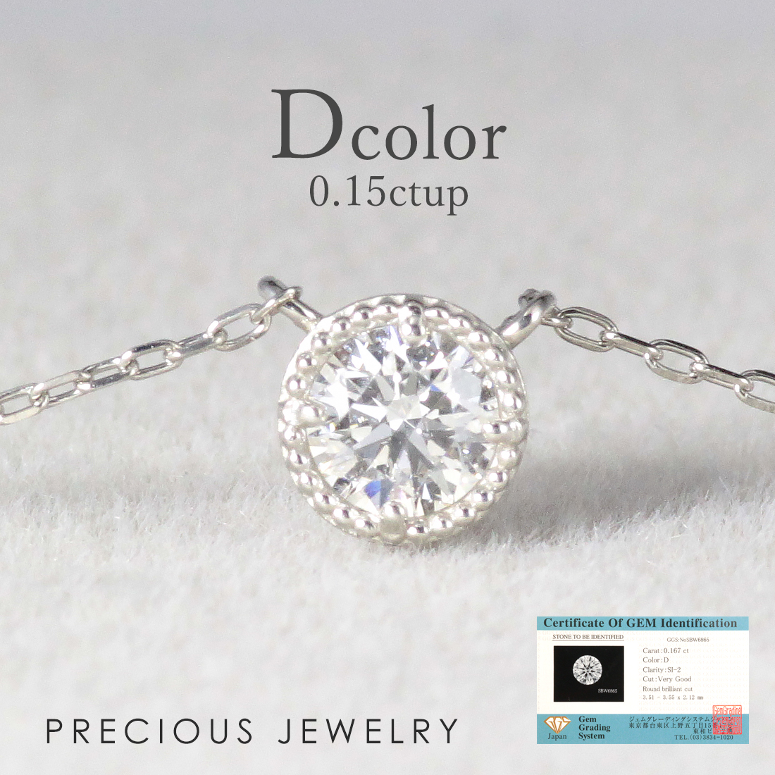 「ダイヤモンド ネックレス 一粒 プラチナ 鑑定書付き」は、繊細で華奢なデザインが魅力のプラチナ製ネックレスです。Pt900のトップにセットされた0.15ct以上の天然ダイヤモンドは、Dカラー・SI2以上・VERY GOOD以上という高品質を誇り、鑑定書でその価値が保証されています。毎日身に着けやすい40cmのカット小豆チェーンはPt850製で、肌馴染みの良さと耐久性も備えています。日本製の丁寧な仕上げやニッケルフリー仕様、ミル打ちの上品な装飾が、普段使いのアクセサリーとしてだけでなくギフトにも最適です。華奢ながら確かな存在感で、日常から特別なシーンまで幅広く活躍します。